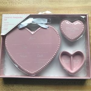 New in box ceramic keepsake set for your new baby or to give at a baby shower.