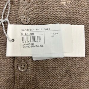 Excellent quality taupe knit cardigan. Purchased from West Coast Kids and never worn. Purchased for 48.99+HST. Listed as size 1-2M.