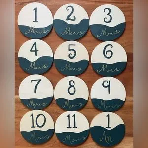 Handmade baby milestone set • Pastille de bois pour la première année de bébé