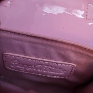 VERY small baby pink sugarthrillz bag. Cut but not the most practical as is doesn't fit much. Has a magnetic closure- slightly deformed from storage since I haven't rrached for it a lot (I usually carry A LOT with me when I go out) good for people who don't need to bring much with them when going out anf just want a cute lil baby bag!