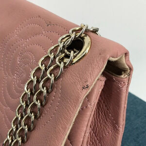 Baby pink quilted purse with chain strap and gold-toned hardware