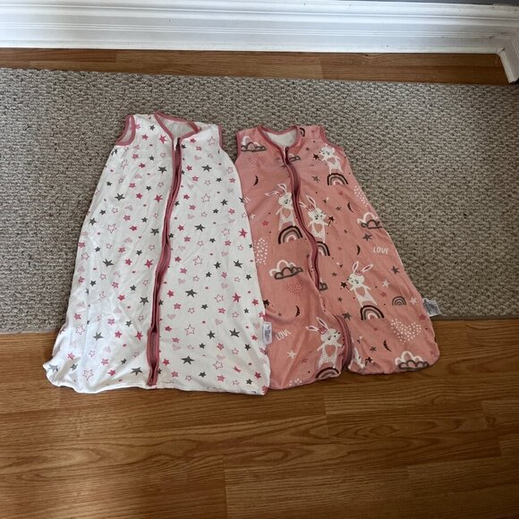 Baby sleep sack 2 pack Size L 12-18 months Pink White Stars Bunnies