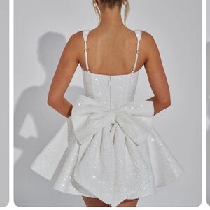Wedding after party look! Brand new, tags on, never worn. Unfortunately it didn’t fit in the chest for me. I am 34DD if that helps, definitely made for the smaller chested. It is a size LARGE but it fits more like a medium or large with smaller boobs.