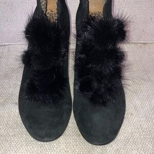 Baci Womens size 8 Chic Black Heeled Boots with Fur Accents - Daisy