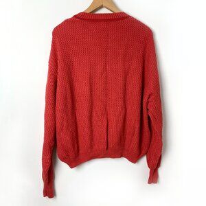 Washed, dried flat, never worn. I'm selling it (even though I just love the design and the fabric) because I don't like the sleeves. I'm short, I have short arms, and these sleeves are just too baggy for me. I take good care of my clothes, but this is still a knit sweater so there might be small snags that I didn't notice. These are easy to fix by pulling them gently to the inside of the sweater.