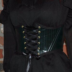 NEW Dark Green Shiny Faux Leather Corset with boning.