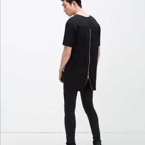 this ZARA greyish blue shirt has a twist on the back! A Zip-up!! this is super trendy and the colour is a classic. It goes with everything.