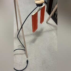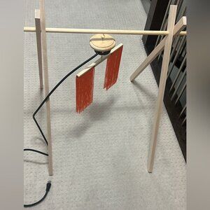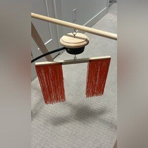 Brand new. Plug in back tickling device. Lay under it and spins slowly to tickle back. You can add things to the strings like fake nails, feathers ect for different tickle effects. Great relaxing. Calming. Adjustable by wood for height. Comes apart easily for storage/ also folds up. NEW.