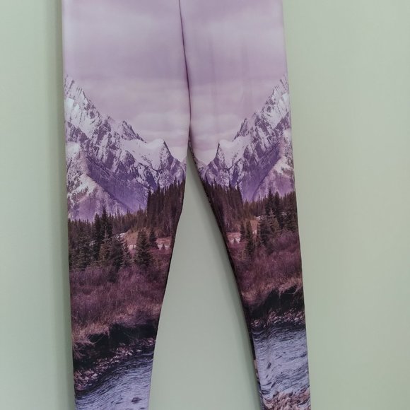 "Back to Nature Apparel" Leggings, Mountain Scene, Unique Wearable Art!! Small.