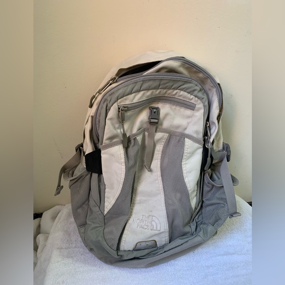 White and gray backpack
