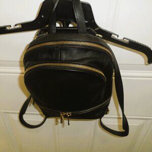 Elegant black genuine leather backpack.