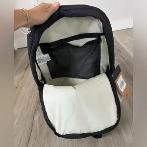 Classic daypack style from The North Face: This City Voyager daypack made of tough nylon features a roomy main compartment with mesh organizer pockets, a 15 inch laptop sleeve, an additional small zippered front compartment, a The North Face logo patch, adjustable shoulder straps and an extra carry handle.