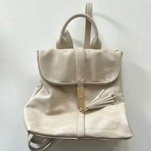 Faux leather backpack in off-white. Great bag that’ll hold a lot of stuff. Very versatile. Lots of pockets.