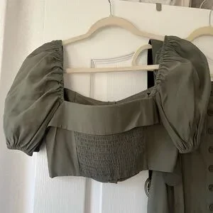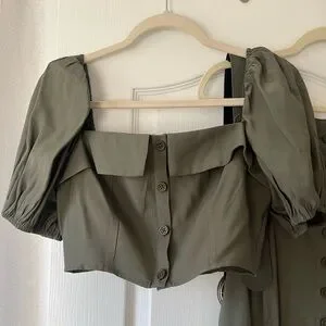 New without tags. Can be worn together or separate. Cropped puff sleeve top, buttons down the front. Belted skirt with button down detail.