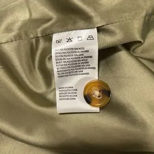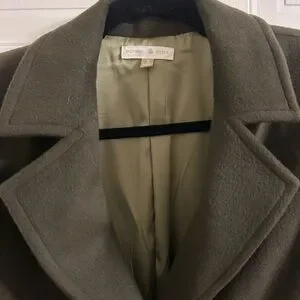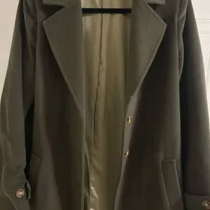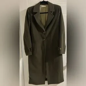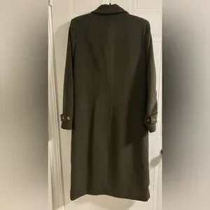 Type: Long coat with tortoise shell buttons and subtle padded shoulders