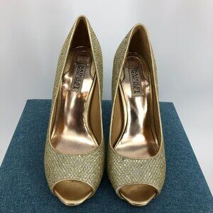 Badgely Mischka Gold Glitter Humbie II Peep Toe Platform Evening Pumps 7.5L & 8R