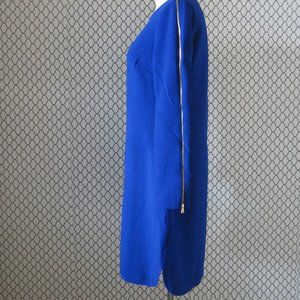Badgley Mischka Belle Blue Full Zip Long Sleeve Hi Low Shift Dress - Size 4