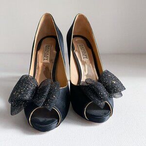 Badgley Mischka Black Satin Bow Detail Peep Toe Heels 6M
