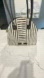 Patent leather Chic shoulder bag with bold black and white stripes. Features elegant bow detail. Ideal for stylish outings.