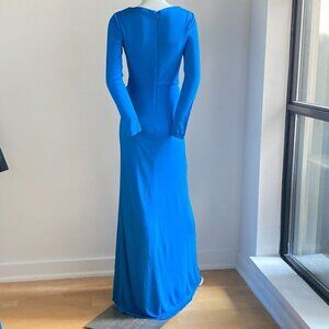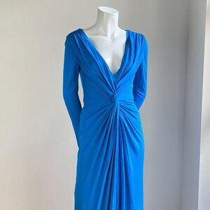 Badgley Mischka Bright Blue Plunging Neckline Ruched Detail Sexy Maxi Dress 0.