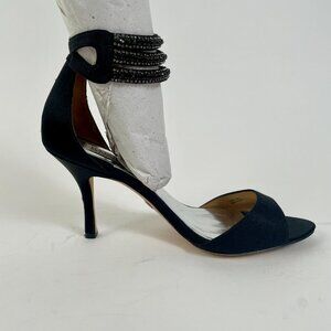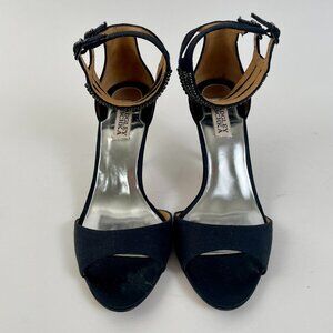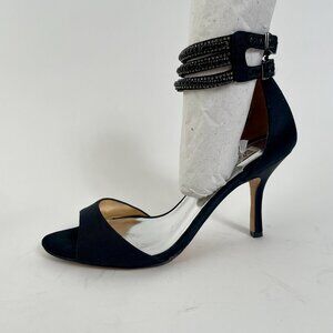 Badgley Mischka Dazzler Black Satin Strappy Heels With Beaded Ankle Strap, Sz 9