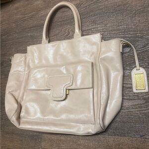 Badgley Mischka EUC large light light pick/Ivory leather Tote Bag