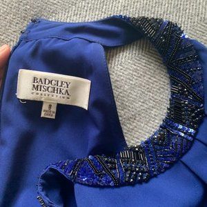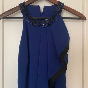 Asymmetrical Ruffle Gown with contrast trim. Worn Only Once. Polyester/spandex.