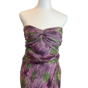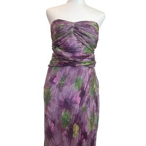 Badgley Mischka Jewel Strapless Floral Dress in Purple and Green Size 16