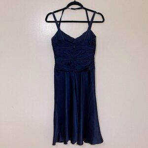 Badgley Mischka Navy Blue Silk Midi Dress 0