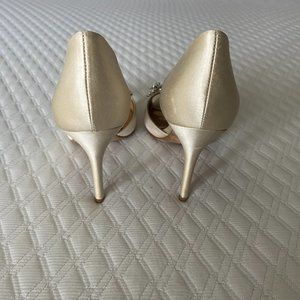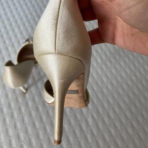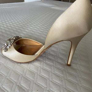 Badgley Mischka Satin Heels with Crystal Embellishment Sz 8 EUC 5" Heel