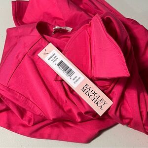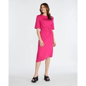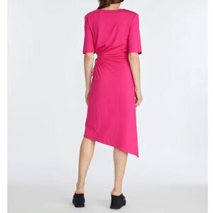 🆕 Badgley Mischka Shoulder Pad T-Shirt Dress With Side Detail in Hot Pink