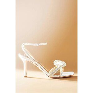 Badgley Mischka WHITE Satin Rhinestone Bow Elaine Heels Wedding 10