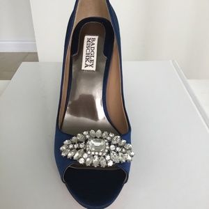 Badgley Mischka royal blue satin open toe shoes size 7 1/2 - fit a little small- could fit a 7 or maybe a 7.5