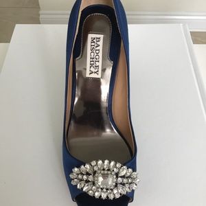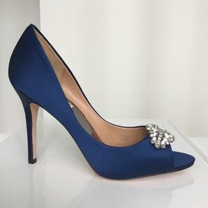 Badgley Mischka royal blue satin open toe pump size 7-7 1/2