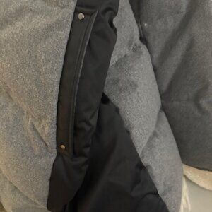 Beautiful gray and black puffer coat with fur trim hood. Very warm and stylish. Great condition.