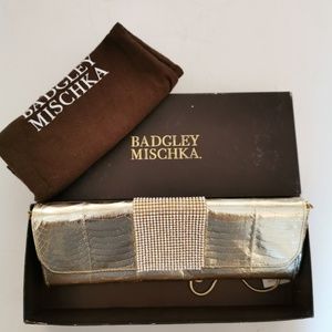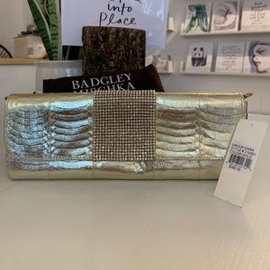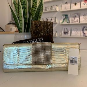Brand new stunning golden Bridal Evening Clutch. Leather upper, with Swarovski crystals. NWT
