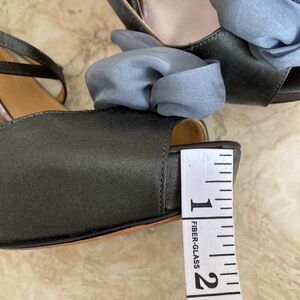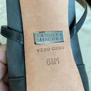 In excellent preowned condition gorgeous Badgley Mischka heels featuring elegant grey silk and organza, adjustable instep strap, platform and peep toe style. Very comfortable footbed and leather soles.