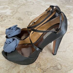 Badgley Mischka Grey Silk Peep Toe Strappy Heels