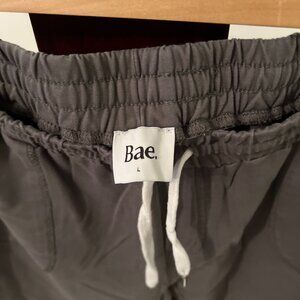 Bae Jersey Jogger pants in a grey/green sage colour. Very good used condition. Skinny leg fit. White drawstring. Flat Waist measurements: 16" (unstretched), 20" (stretched), rise 10", leg 21". Non-smoking, non-pet home.