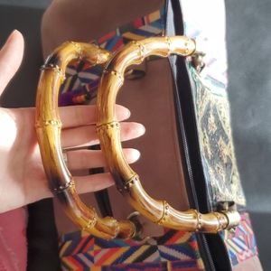 Gorgeous hand made bag with bamboo handle. Used only 2-3times. Excellent condition.
