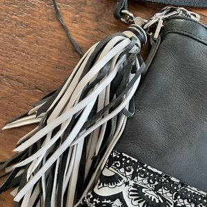 Small handbag in real leather from the Sakroots brand, it is somewhat damaged at the zipper and otherwise the leather needs varnish to regain its original color. I accept offers! The interior is only a pocket. The measurements are 12 inches wide and 7 and a half high.