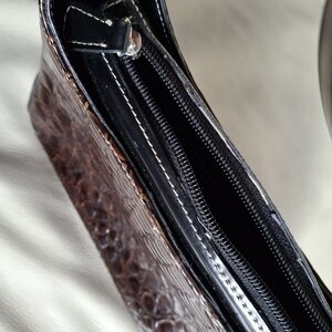 pleather. some scuffs on the handle (see photo)