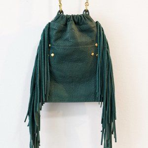 Beautiful small bag by Jerome Dreyfuss in dark green with gold chain. Perfect condition.