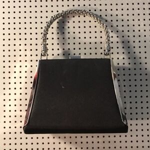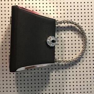 Bring the elegance and drama with this little black and silver mini evening bag. Dainty but fierce.