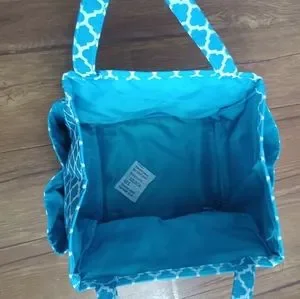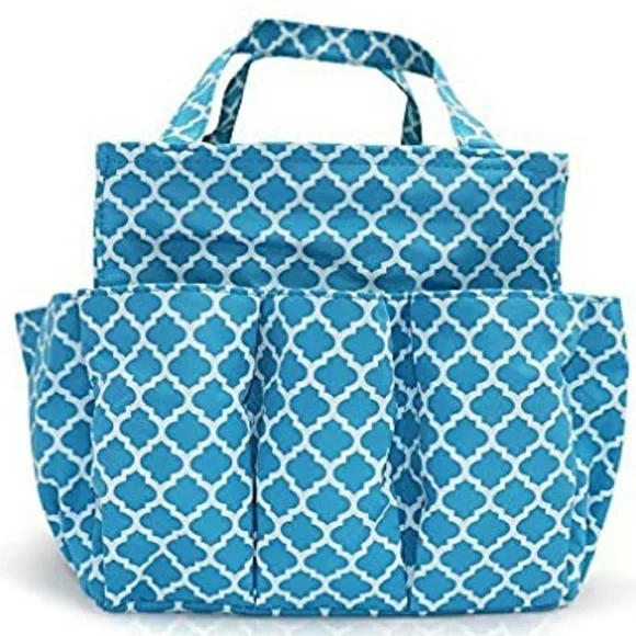 Brand new Bag with Multi Pockets 4 Side Pouches quatrefoil pattern (Blue)