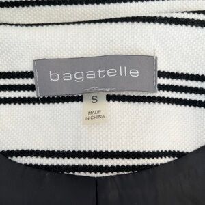 Bagatelle moto jacket with bold black-and-white stripes and an asymmetrical zipper. Soft structured knit fabric, flattering silhouette, and a modern minimalist look. Perfect for work, brunch, or layering with denim. Size small EUC