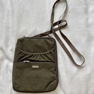 Baggallini Crossbody Nylon Zip Bag Travel Organizer Green Lots Pockets Tablet