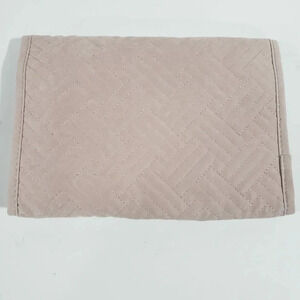 Bagsmart travel jewelry organizing case,soft pink/tan color,soft suede quilted fabric,envelope flap with snap closure.