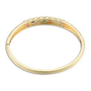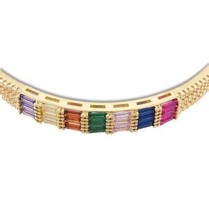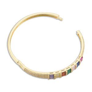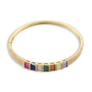 This beautiful bracelet has panche & style. Colorful Cubic Zirconia Rectangle Hinged Bangle, Brass Jewelry for Women, Nickel Free, Golden