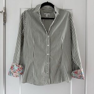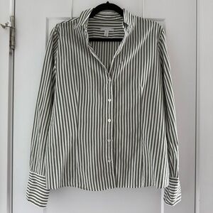 Bagutta green & white stripe cotton button down dress shirt - size Medium (M)